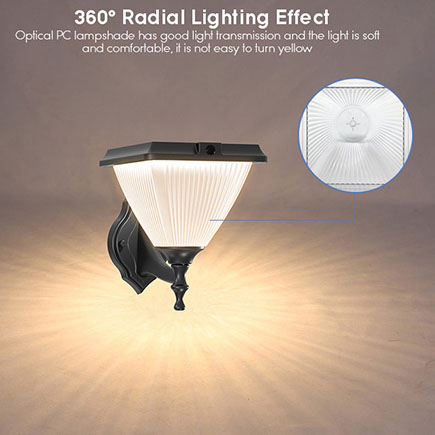 [BUILT-IN MONO SOLAR PANEL / LITHIUM BATTERY] The solar wall light is builted in a 7.5*7.5 inches large-area monocrystalline solar panel, it only needs 6-8 hours full charging time, the conversion rate is up to 22%. Adopt brand new 4400mAh lithium battery, guarantee to continue lighting for 12+ hours.
