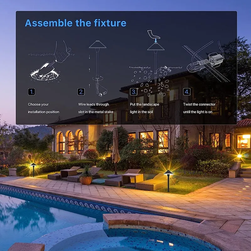 High-quality 5cct tunable low voltage landscape light, you can change the color temperature at will. The shading eave prevents the light spread horizontally, avoiding light pollution obviously. The fine landscape light can light up your garden, lawn, yard, private lane, walkway at night.