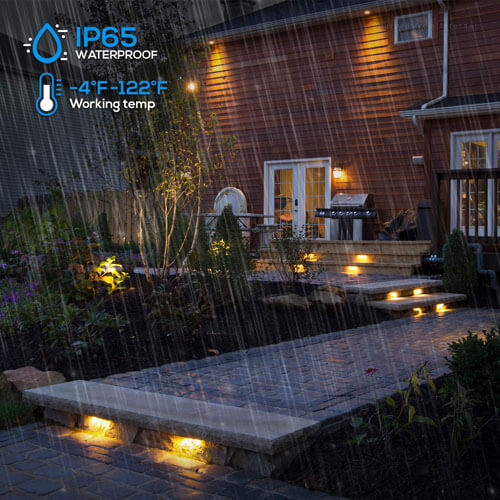 This LED hardscape light only consumes 1.5W to produce 110lm of 2700K soft white lighting, which is equivalent to a 10W halogen light. 45 degree downward beam angle lets you feel no glaring when you are close to the light. CRI 90 shows the true color of the objects.