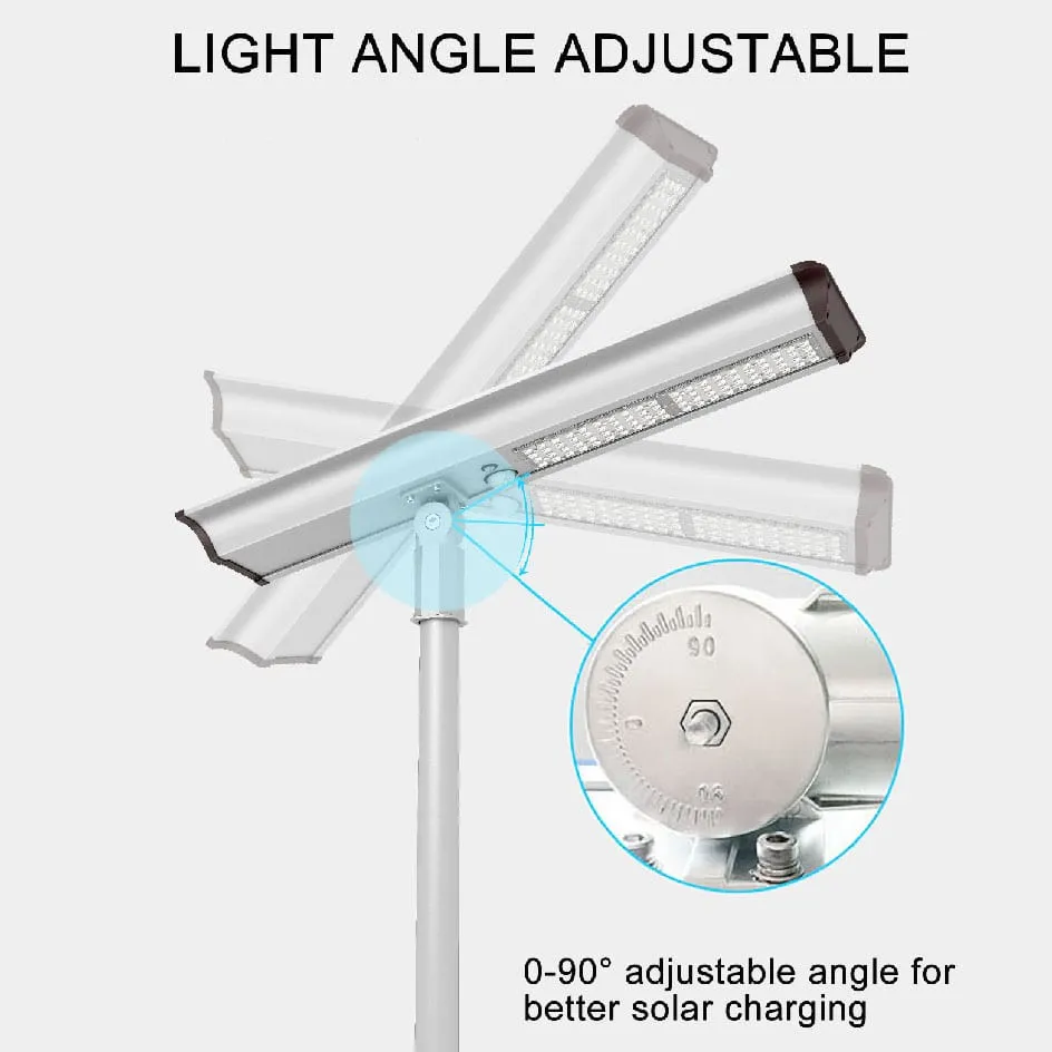 Solar street lights with 90° adjustable arm, it can be easily mounted on a pole (pole diameter 60mm, recommended mounted height 6-7m)