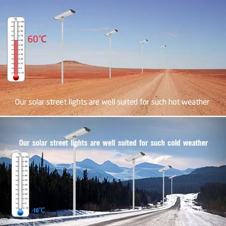 Solar street lights IP65 waterproof grade, rainproof, lightning protection and dustproof, with aluminum body, the solar street light can work up to 5 years.