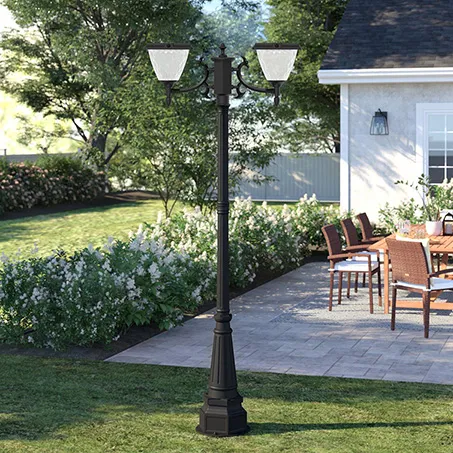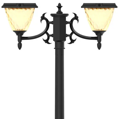 Illuminate the way with this 2-Head Solar Lamp Post. This lamp post brings multifunctional style to your outdoor decor. This lamp post is constructed of a die-cast aluminum alloy and PC and finished in a durable Black powder coated finish. Featuring 2 lamps, that automatically turn on at dusk, and off at dawn. This solar lamp is widely used for Garden, Lawn, Pathway, Driveway, Front/Back Door.