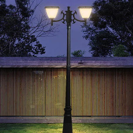 [BUILT-IN MONO SOLAR PANEL / LITHIUM BATTERY] The 2-head solar post light is builted in a 2x 7.5*7.5 inches large-area monocrystalline solar panel, it only needs 6-8 hours full charging time, the conversion rate is up to 22%. Adopt brand new 2 4400mAh lithium batteries, guarantee to continue lighting for 12+ hours.