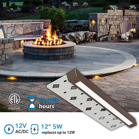 This ETL listed 12 inch low voltage hardscape parver lights delivers 450lm of soft white light while only using 5W of power. Bad weather won't be an issue for this light thanks to the IP65 waterproof rating while the downward shine perfectly lights your decks, barbecue fire pits, landscape steps, flowerbeds, and masonry walls.