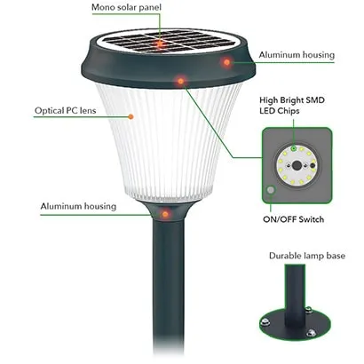 200 Lumens Round Solar Outdoor Lawn Lights, Product Description: