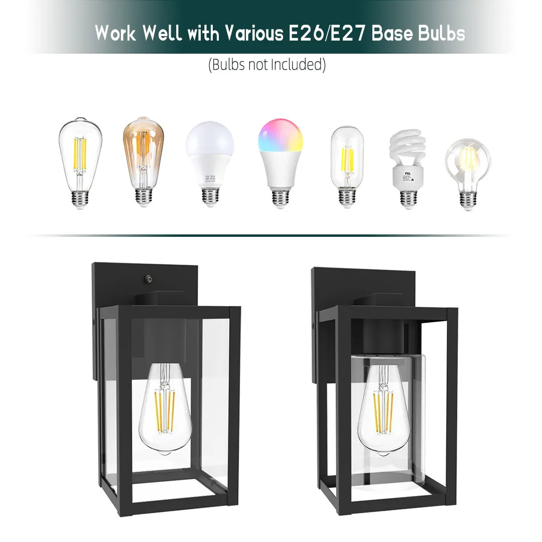 Weather-resistant Wall Lanterns: Constructed with sturdy metal frame and thickened glass panel, our outdoor wall sconce is waterproof and durable enough to withstand any weather changes, from sun to snow, rain to ice. The high-quality metal effectively prevents the wall light from rust or corrosion to keep its stylish look for years of usage.
