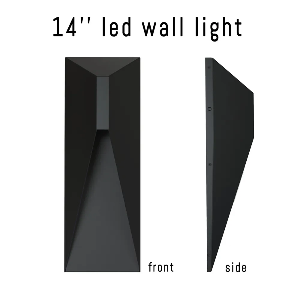 Goldsuno 14inch 15 watt 1000lm unique shape design led wall fixtue with a matte black finish and warm white glow, this simple and luxurious wall light enhances the sense of modern design for homes and improves the quality of your living space.
